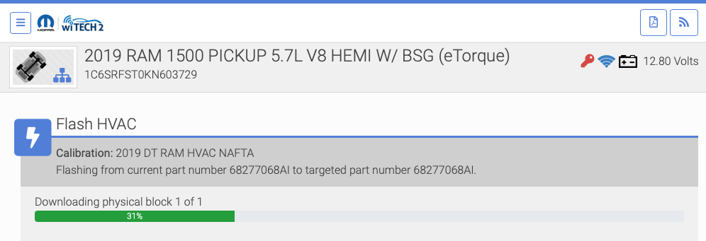 - Return to wiTECH, navigate to another wiTECH tab, then return to the Flash tab in order to refresh wiTECH. The VRS subscription warning no longer displays. Select the desired flash to initiate the flash process.
