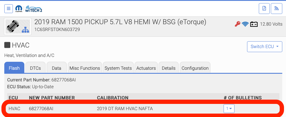 - Navigate to the Flash Tab and select the link to the wiTECH MTSP page.